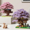 DIY Purple Romantic Cherry Blossom Flower Pink Tree House Train Assembly Building Blocks Classic Model Bricks Sets Kid